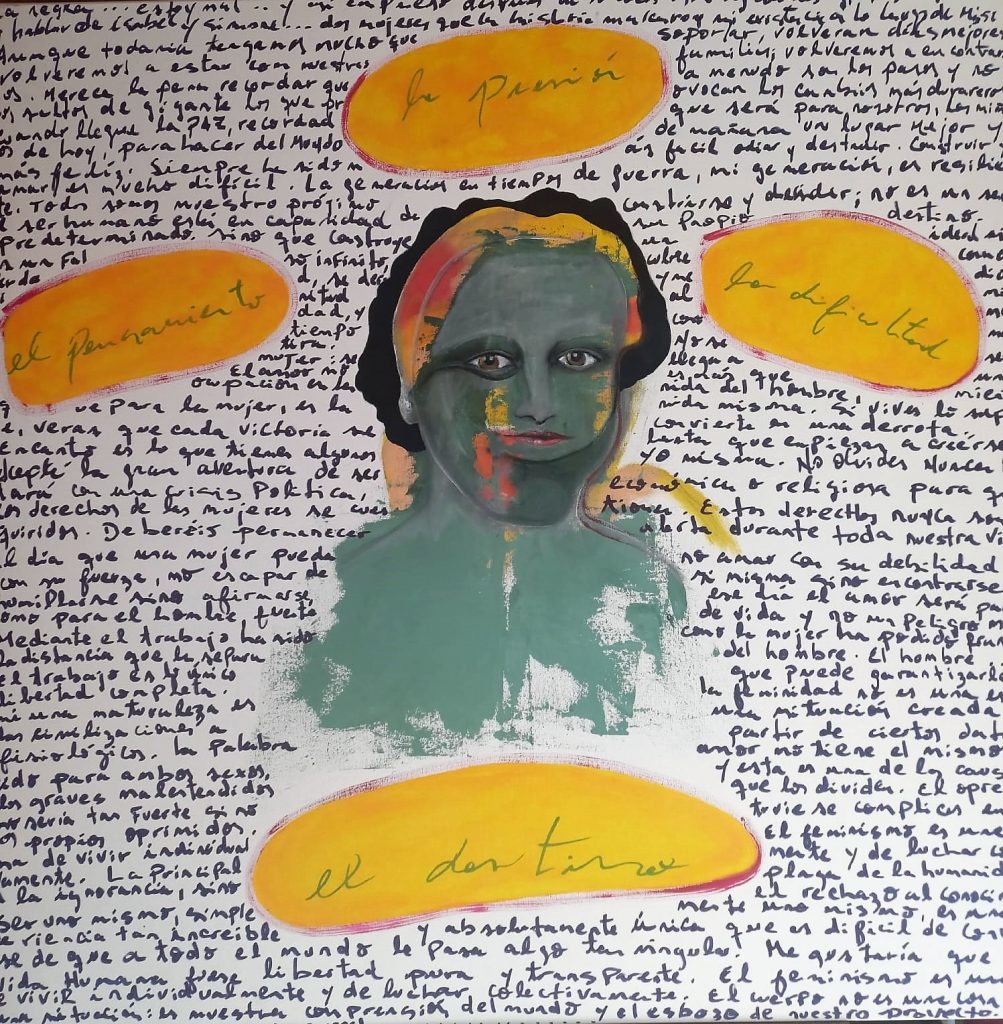 Mujeres reúne una serie de trabajos que “se inicia en 2007 y llega hasta 2023. En ella se propone una revisión histórica de mujeres que marcaron su tiempo”, expresó Carlos Larrosa a EL DIARIO.
