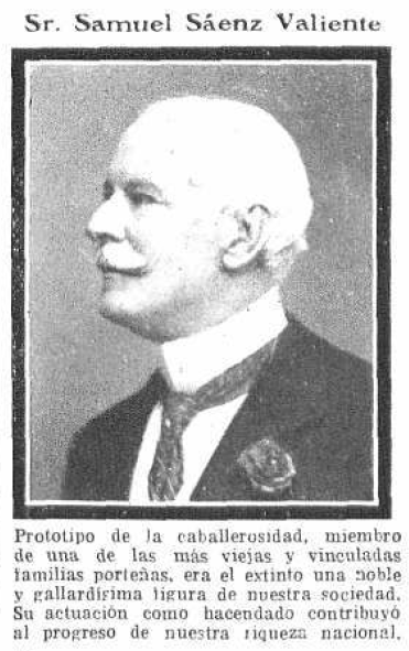Samuel Pedro Sáenz Valiente Higuimbothom había nacido en Buenos Aires, el 20 de agosto de 1846. Era nieto de Anselmo Sáenz Valiente casado con Juana Pueyrredón, hermana de Juan Martín Pueyrredón que fue uno de los directores supremos de las Provincias Unidas del Río de la Plata.