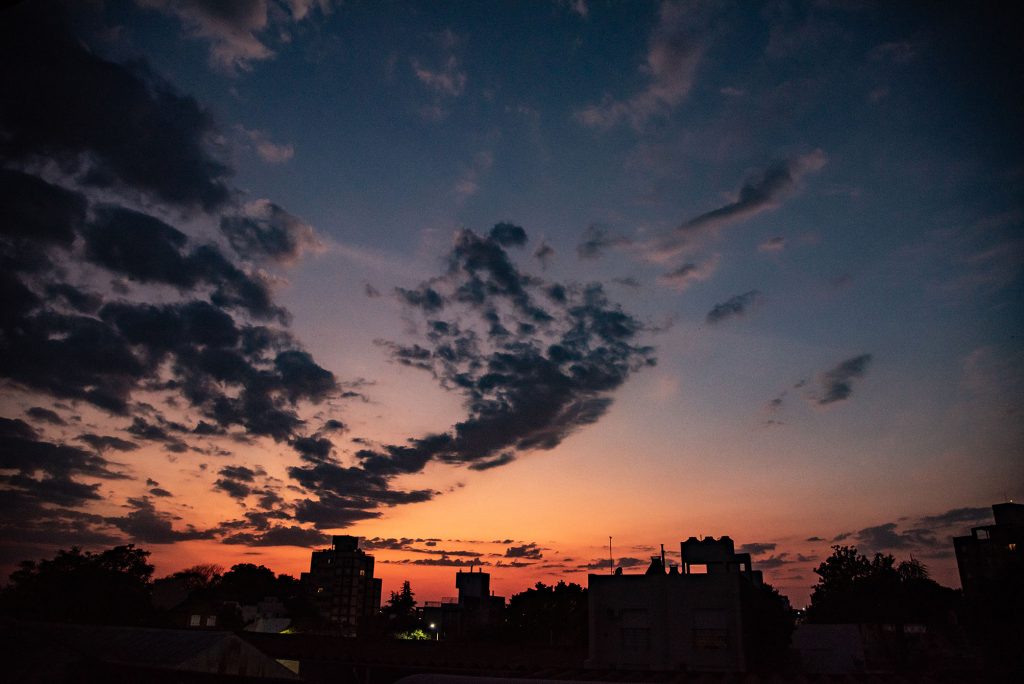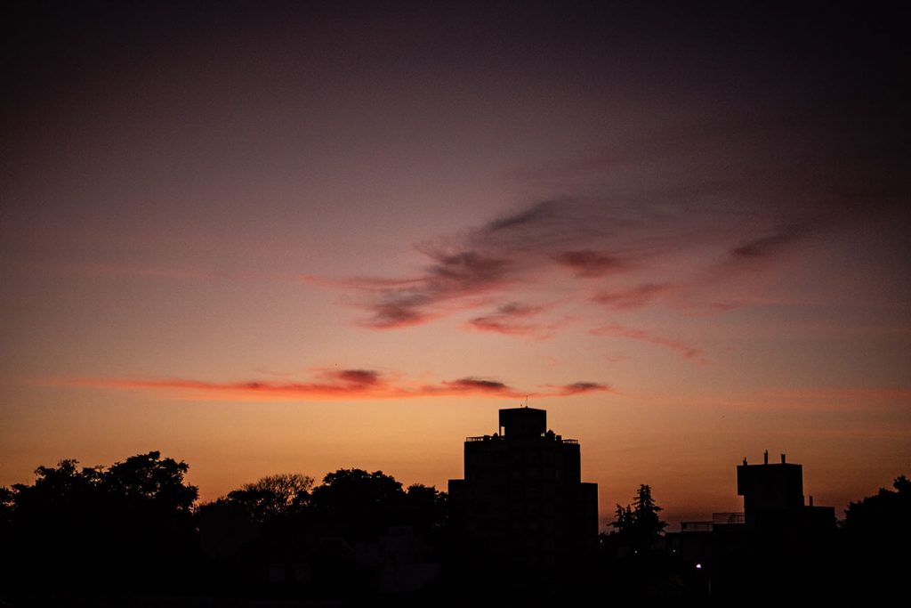 La estrella que es centro de nuestro sistema planetario se hunde detrás de la línea del horizonte, más allá de las islas y el río. La magia del atardecer permite percibir en ese instante la tierra entera rodar. Mientras un hondo azul comienza a ganar la jornada en una despedida del día, las nubes viajeras se tiñen con los últimos destellos del astro rey. Tras el crepúsculo, el ocaso convoca la luna como presencia protagónica en el comienzo de la noche.