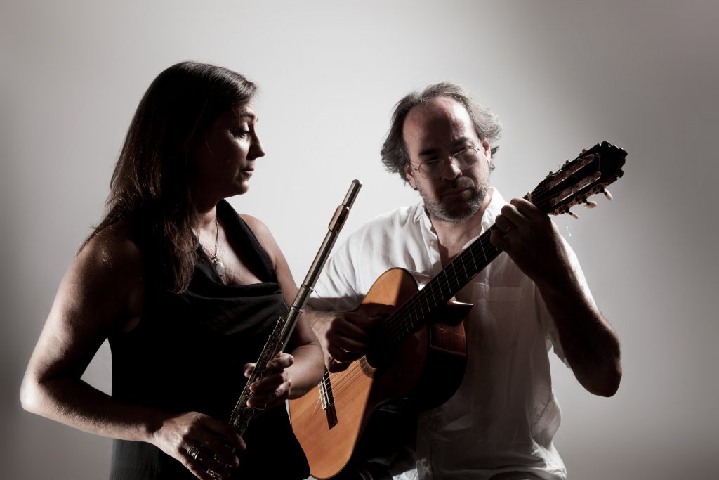 Ese concepto he tratado de incorporar en nuestro trabajo en estas Cinco evocaciones, en la cual, si bien los instrumentos son solistas, el foco de la búsqueda se ha planteado en lograr una integración en la cual tanto la flauta como la guitarra no siempre estén como voces concertantes (sobresaliendo del contexto). El concepto, por el contrario, es que la guitarra sea parte del tratamiento de las texturas que hacen las cuerdas de la propia orquesta. O que la propia flauta se integre a los vientos que elegí para la composición. De modo tal de que, en síntesis, integremos nuestros dos instrumentos, la flauta y la guitarra, a la orquesta. Que no se perciba a la orquesta como un mero acompañante de dos solistas, sino que haya un permanente diálogo, un trabajo; me gusta pensar en texturas sonoras a las cuales guitarra y flauta se suman a la orquesta. Aunque también por supuesto, haya momentos solistas, netamente protagonizados por la flauta o la guitarra mientras la orquesta sostiene, acompaña, lo que requiere la música en ese momento.