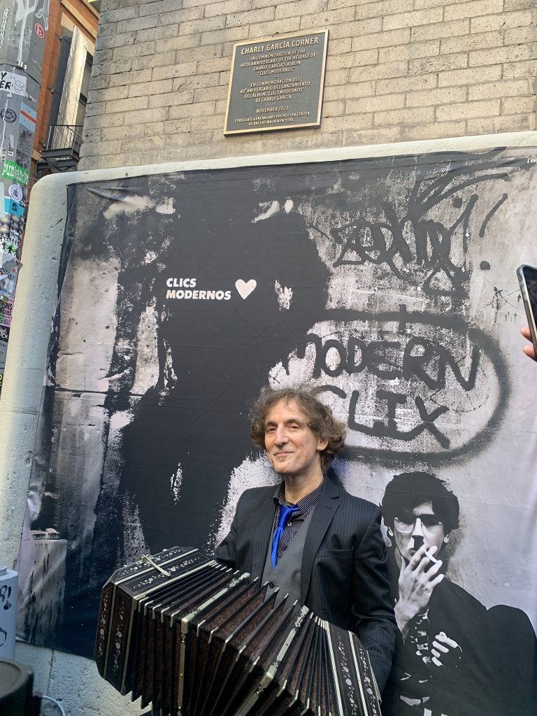 Aún pendían en el aire esas melodías y allí quedó la placa en bronce macizo con la leyenda: “IN COMMEMORATION OF THE 40TH ANNIVERSARY OF THE RELEASE OF CHARLY GARCIA´S ALBUM CLICS MODERNOS”. ¡El hijo dilecto de Rivadavia y José M. Moreno ya tenía su esquina en Nueva York!