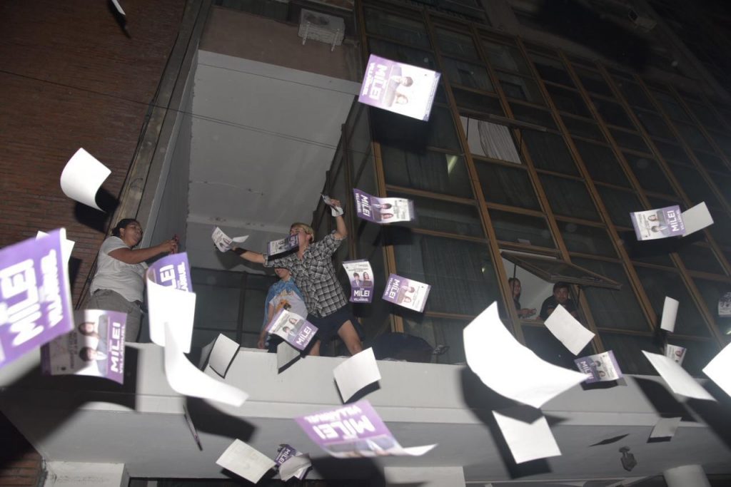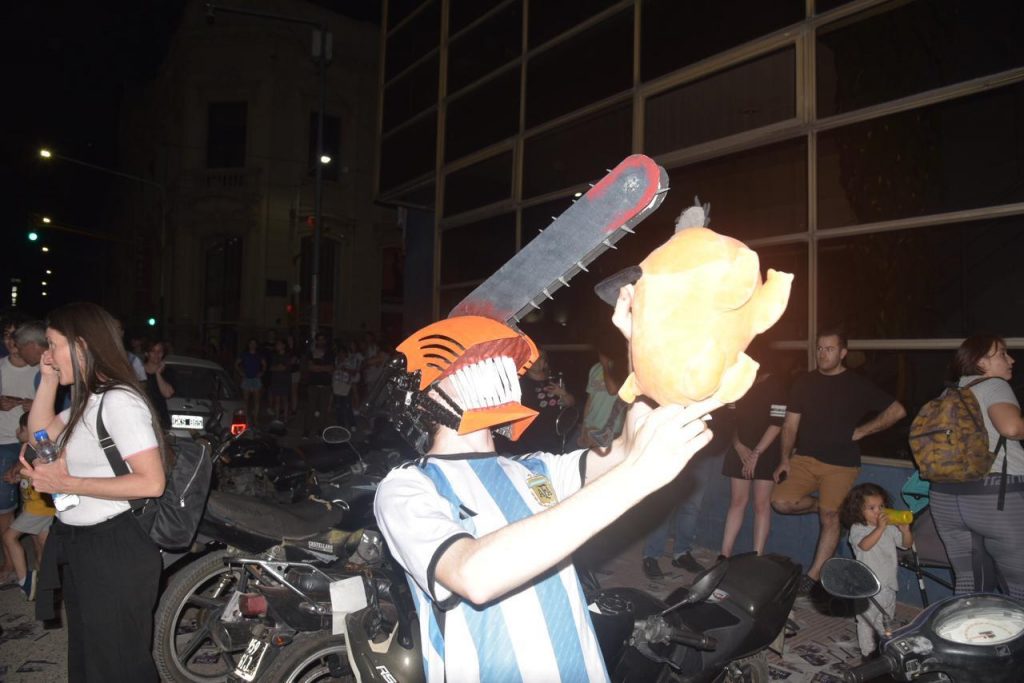 En calle Urquiza y Buenos Aires de la capital provincial, frente al búnker de La Libertad Avanza, hubo festejos al conocerse el resultado del balotaje y el triunfo de Javier Milei.