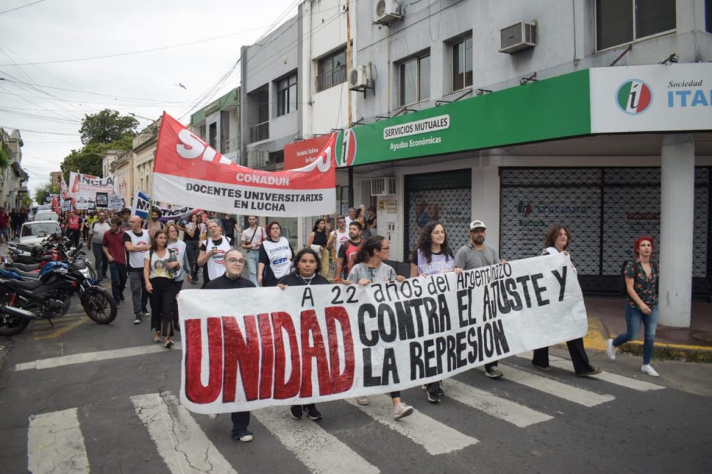 El Movimiento Socialista de los Trabajadores, organizaciones políticas, sindicales, ambientales, feministas, de DDHH y organizaciones sociales se concentraron en plaza 1º de Mayo, de Paraná, y marcharon hacia Casa de Gobierno.