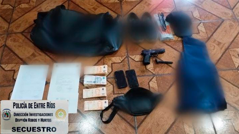 Tras allanamientos que se concretaron en las viviendas de estos individuos, tanto en Paraná como en la provincia de Buenos Aires -en esta última conjuntamente con personal de la DDI de Lanús-, se procedió a la detención de un hombre de 35 años (empleado de la distribuidora donde se perpetró el hecho investigado) y al secuestro de una réplica de arma de fuego 9mm, dinero en efectivo en moneda nacional y extranjera, prendas de vestir utilizada en el asalto y teléfonos celulares.