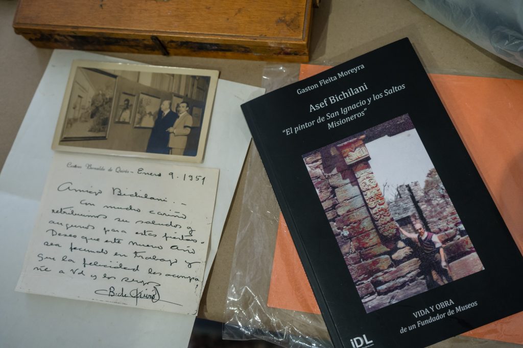 La apertura de la muestra de una valiosa serie de sus cuadros, objetos, correspondencia y fotos con Quirós, serán la oportunidad para redescubrir y conocer más de este entrerriano. Será este viernes 23, a las 19, en el Museo Provincial de Bellas Artes “Dr. Pedro E. Martínez”, en calle Buenos Aires 355 de Paraná. También se realizará la presentación del libro “Asef Bichilani. El pintor de San Ignacio y los Saltos Misioneros. Vida y obra de un fundador de Museos”, del Lic. Gastón Fleita Moreyra, un especialista sobre la biografía de la figura de este artista gualeyo. Estará presente Miguel Antonio Bichilani Sarur, su sobrino y ahijado.