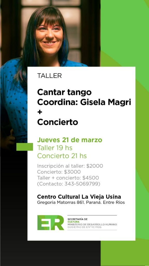 En esta oportunidad, Magri brindará el TALLER “Cantar tango”, que también se desarrollará en La Vieja Usina, el mismo jueves de 19 a 21 horas.