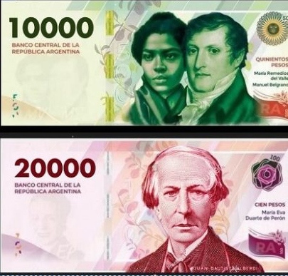 DETALLES DE LOS BILLETES. Según anunció oportunamente el Banco Central, el billete de $10.000 tendrá las imágenes de Manuel Belgrano y de María Remedios del Valle, heroína de la Guerra de la Independencia, en el anverso. En el reverso, irá como motivo principal la recreación artística de la escena de la Jura de la Bandera realizada el 27 de febrero de 1812.