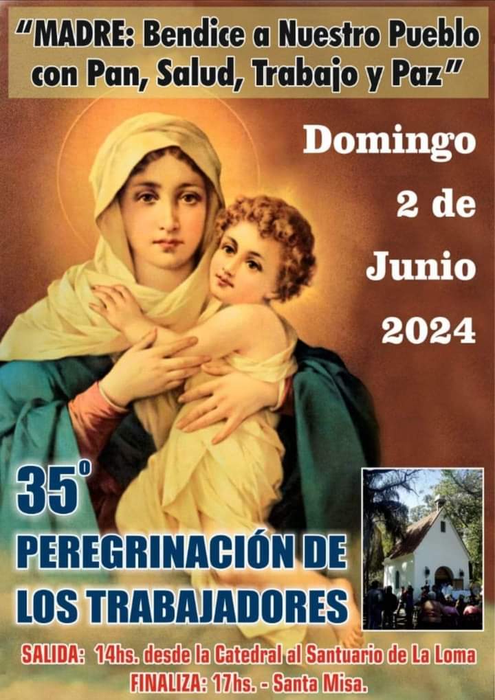 Partirá el domingo 2 de junio a las 14 desde la Catedral y culminará en el Santuario La Loma, donde el Monseñor Juan Alberto Puiggari oficiará la misa desde las 17.