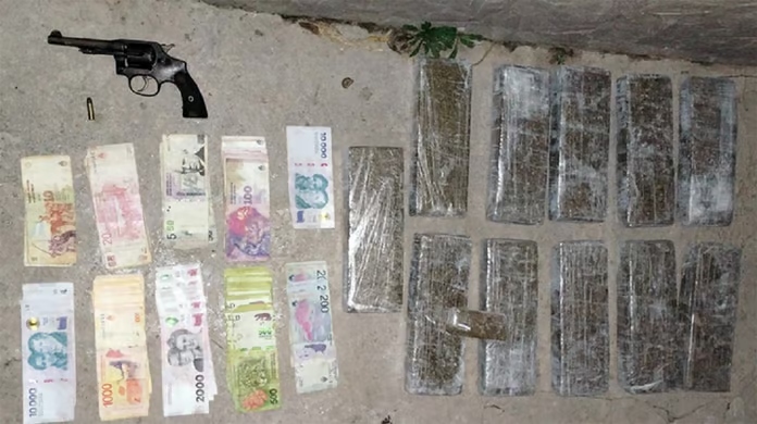 Posteriormente se verificó la valija que contenía 11 ladrillos compactos de marihuana y un trozo más pequeño, cuyo pesaje arrojó la suma total de 8.593,5 kilos, además de 221.250 pesos de dinero en efectivo.