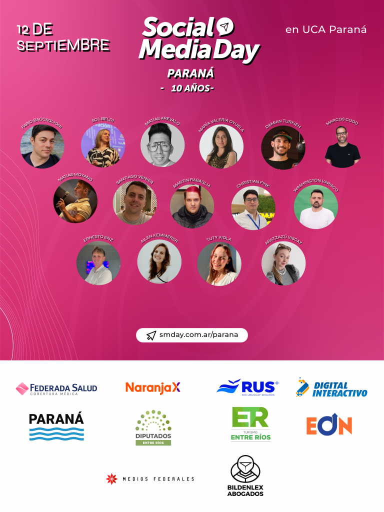 El Social Media Day cumple 10 años en la ciudad y se llevará adelante este jueves 12 de septiembre de 9:00 a 13:00 en la Universidad Católica Argentina, en Paraná