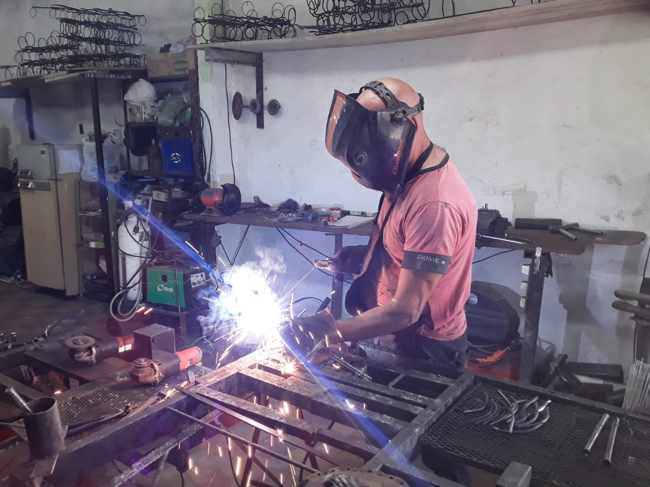 Héctor destina gran parte de las horas del día en su taller para producir la mayor cantidad posible, no solo de portamacetas, sino también otros productos como por ejemplo parrillas, planchas para la cocina, palitas y mesas plegables, entre otros.