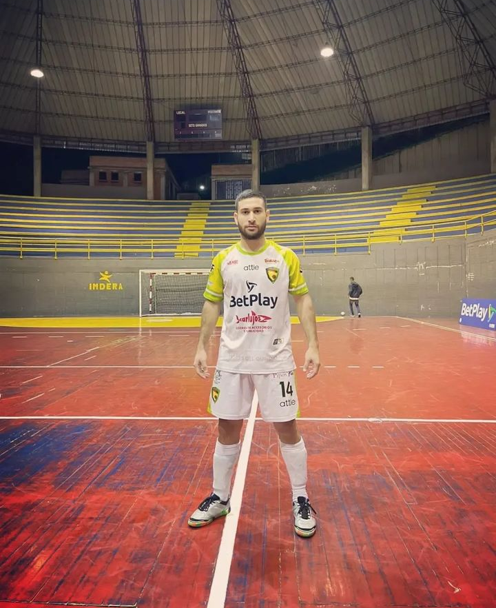 El paranaense integrando el equipo de Tigres de Quindío antes de disputar un encuentro correspondiente a la Liga Profesional de Futsal de Colombia.