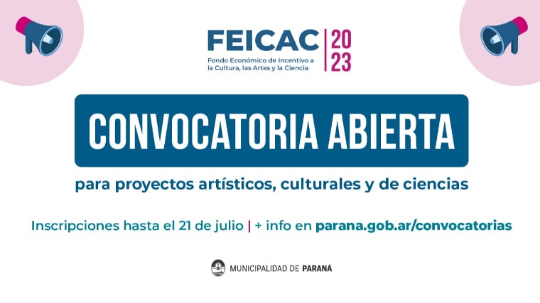Los proyectos para el Fondo Económico de Incentivo a la Cultura, las Artes y la Ciencia se recibirán hasta el 21 de julio 2023. La convocatoria fue reorganizada y jerarquizada por la actual gestión municipal con el objetivo de apoyar y acompañar proyectos orientados a la promoción y desarrollo sociocultural de la comunidad paranaense.