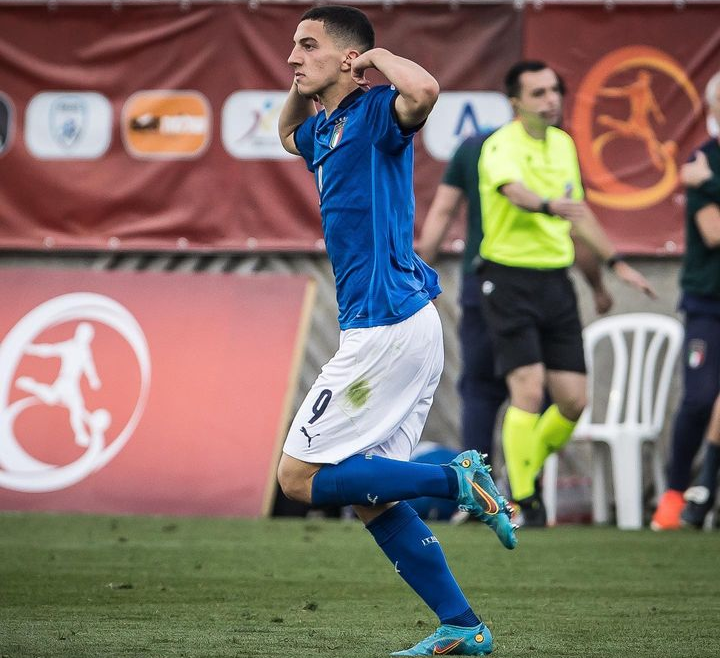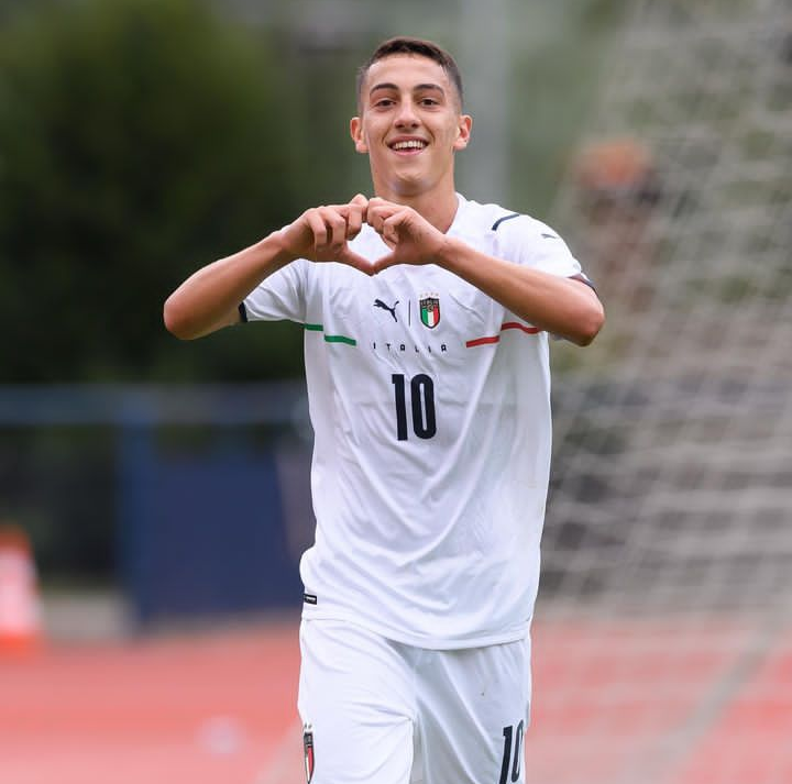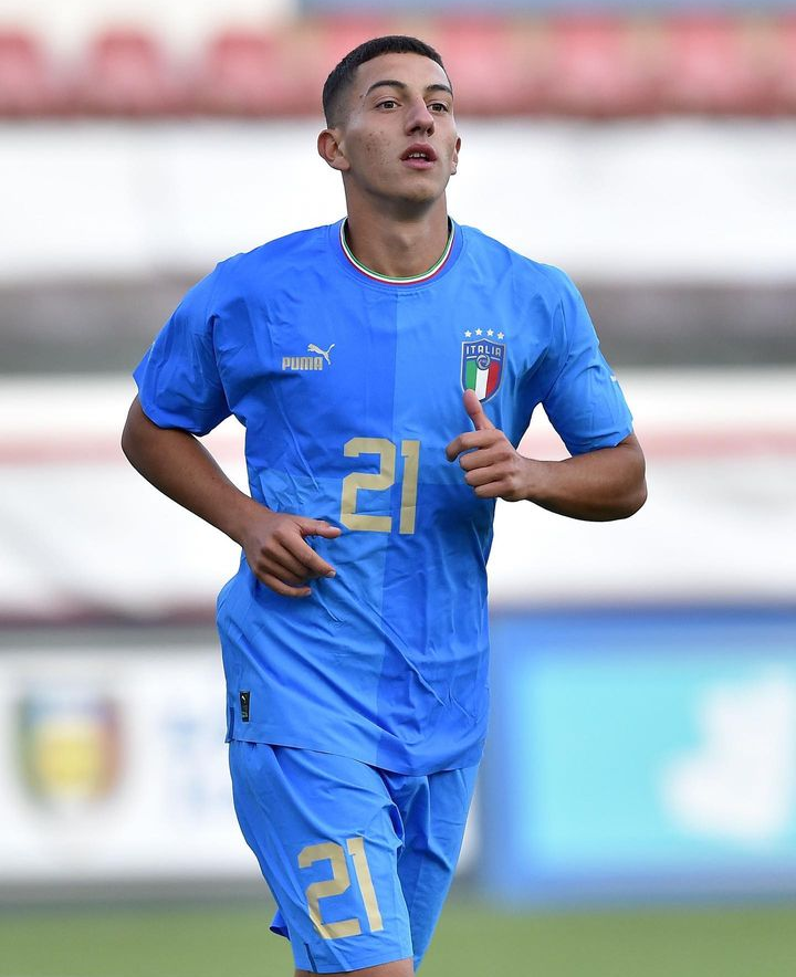 En los seleccionados italianos sucede algo similar y ostenta marcas dignas de admirar. En el representativo U-17 concluyó con un saldo de 12 tantos en 19 juegos (ocho marcados en encuentros amistosos, tres en la etapa clasificatoria a la Euro de la categoría y uno en la Euro U-17 2022); mientras que en el combinado U-18 ya ha jugado siete compromisos amistosos y marcó en una ocasión.