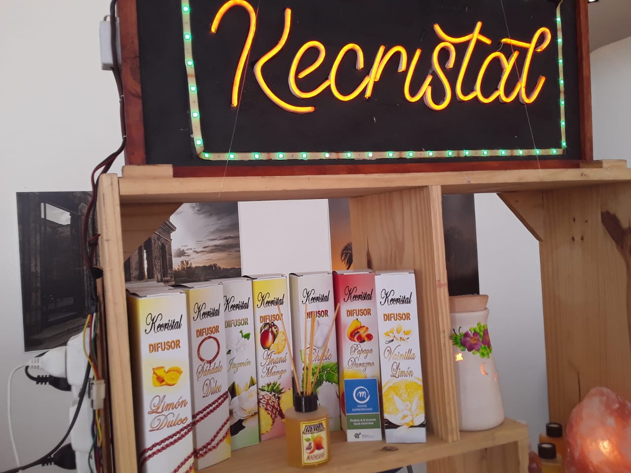 “Yo me dedico a lo que es fabricación de lámparas de sal, fuentes de agua, difusores con varillas, esencias, sahumerios, aromatizantes de tela, aromatizantes de ambiente, entre otras cosas. Todo es elaboración artesanal, nada tiene componentes químicos, es decir, lo puede usar cualquiera. Por ejemplo, el aromatizante que se lo llama perfumina también sirve para uso personal como repelente natural”.