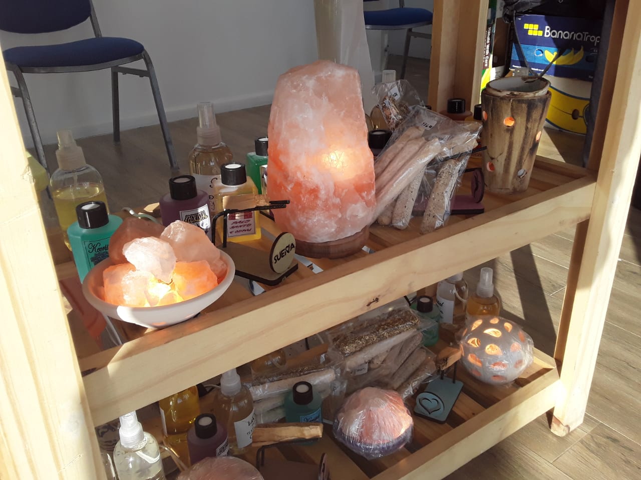– Lo que más salen son lámparas de sal porque son un icono, pero las esencias están saliendo muchísimo porque tengo mucha clientela nueva que se está dedicando por ejemplo a velas de soja, entonces puede ocupar mi esencia concentrada para aromatizarlas, después también sale mucho todo lo que es la línea de aromatizantes, difusores y sahumerios.