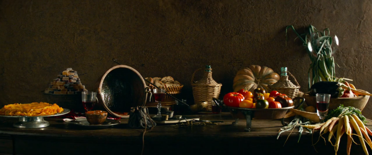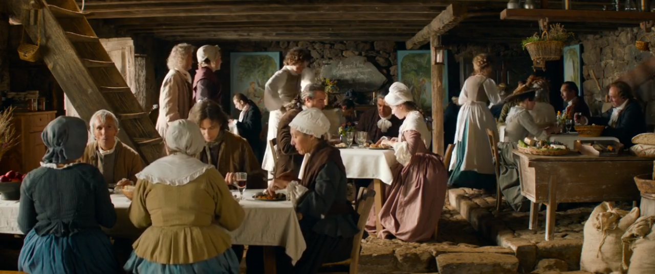 Además del convite histórico, esta realización deleita por su composición fotográfica. El trabajo de luces y cámaras (más vestuario, sonido, escenografía y locaciones) produce una sensación inmersiva en el espíritu de época. Fotografía y dirección se inspiran en las estéticas emergentes de ese entonces y testifican el clima histórico de disconformidad generalizada. Al mismo tiempo revelan la naturaleza cotidiana y social de lo político que desborda en lo culinario, lo pictórico y lo doméstico. Por doquier se encuentran guiños y exquisitas referencias a la pintura de Jean Chardin al retratar una atmósfera de lo hogareño en colores tenues y personajes (siluetas, objetos) bañados por haces de luz. En varias oportunidades sorprenden tomas cual óleo sobre lienzo, hipnóticas, delicadamente compuestas, pero con la crudeza propia de la naturaleza muerta. A esta vertiente pictórica -disidente del cánon de su época- se suma otro acontecimiento que evidencia que el mundo está cambiando: los hermanos Montgolfier crean el primer globo aerostático y no solo el periódico lo plasma en imagen sino que Mancerón lo inmortaliza con descreimiento provocador devenido en vaticinio de su propia ventura: “El día en que los hombres vuelen, los cocineros serán reyes”.