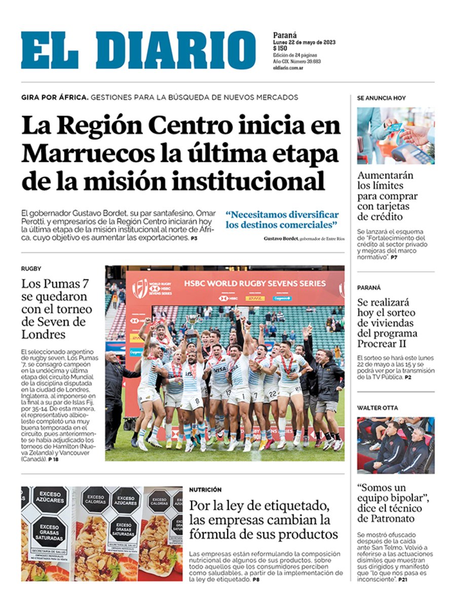 Mirá la tapa de la edición impresa de EL DIARIO 22/05/23