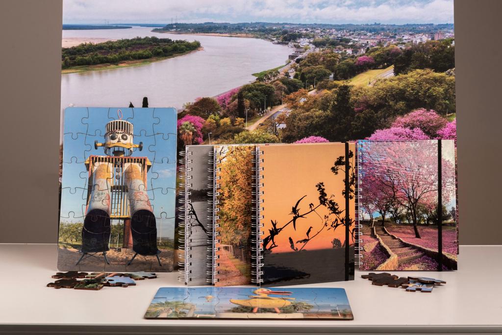 Además, Cynthia dedica gran parte de su tiempo también a fabricar diversos objetos de decoración y uso diario, como agendas, libretas y calendarios. También hace estampado por sublimación en bandejas, tazas, mates, posavasos, imanes de la ciudad, postales de MDF, mouse pads, fundas de neoprene, cuadros con acrílicos para colorear con diseños para adultos y niños, rompecabezas, pizarras, juegos didácticos con flora y fauna de la región.