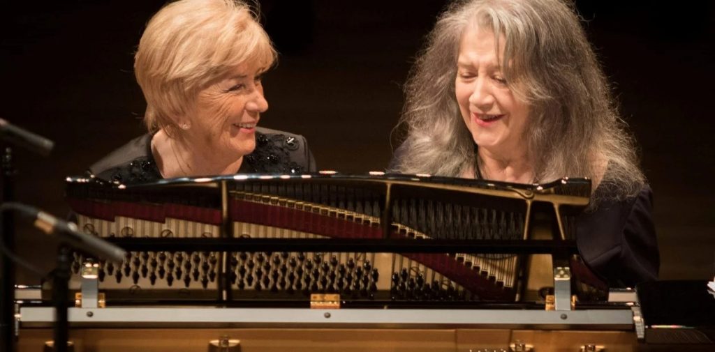 Graciela Reca junto a Martha Argerich, en pleno concierto.