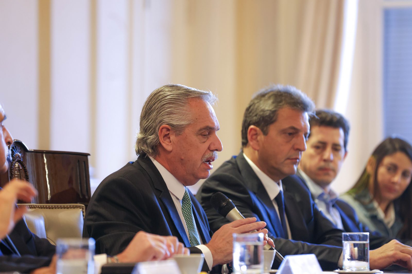 Estuvieron presentes también el vicejefe de Gabinete, Juan Manuel Olmos; el secretario General de la Presidencia, Julio Vitobello; la presidenta del Banco Nación, Silvina Batakis; la secretaria de Legal y Técnica, Vilma Ibarra; la secretaria de Asuntos Estratégicos de la Presidencia, Mercedes Marcó del Pont; la portavoz de la presidencia, Gabriela Cerruti; el secretario de Medios y Comunicación Pública, Juan Ross; y la interventora de la Agencia Federal de Inteligencia, Ana Clara Alberdi.