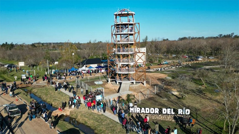 Uno de los momentos más importantes se trató del acto de corte de cinta del gran atractivo del paseo, el Mirador del Río. Tras realizar una recorrida por todo el circuito, el intendente Esteban Piaggio, junto con la viceintendenta, Lorena Arrozogaray, el senador departamental, Jorge Maradey, el secretario de Desarrollo Social, Ambiente y Salud, Martín Piaggio, la directora de Ambiente, Camila Ronconi, se convirtieron en los primeros visitantes de la torre de madera elevada, que permite obtener una vista panorámica a 18 metros de altura.
