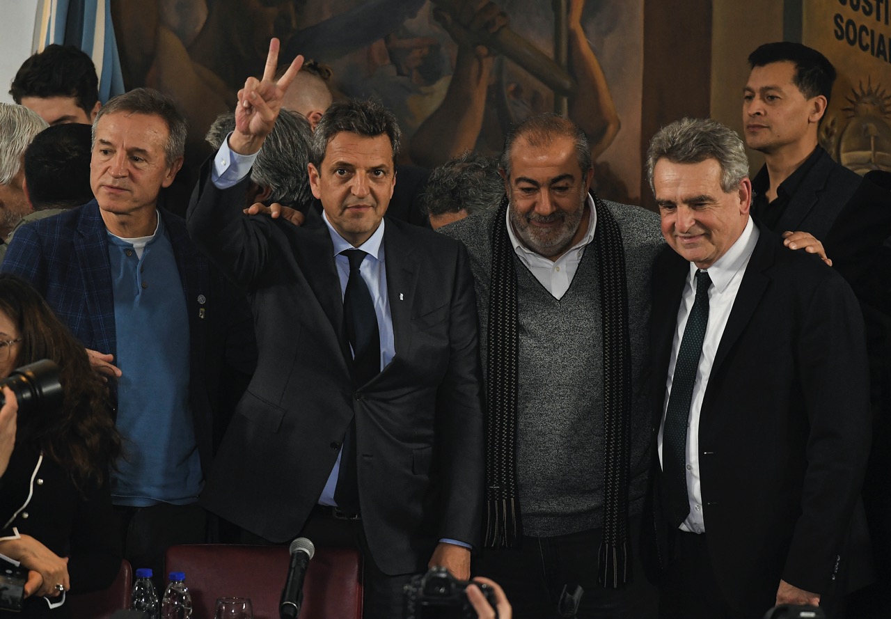 El ministro de Economía y precandidato presidencial por Unión por la Patria (UxP), Sergio Massa, participó junto con su compañero de fórmula, Agustín Rossi, de un acto en el Salón Felipe Vallese de la Confederación General del Trabajo (CGT), organizado por el movimiento obrero para respaldar al binomio del oficialismo en los próximos comicios.