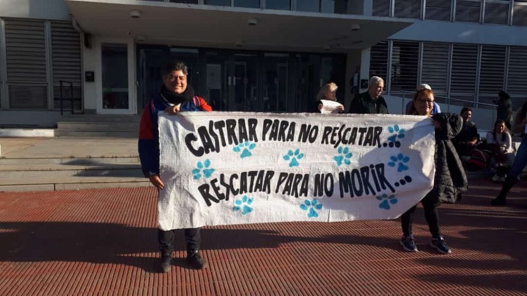 Este miércoles por la tarde, en la puerta de Tribunales, un grupo de rescatistas y proteccionistas de animales se reunieron para reclamar que “el Estado hagan más castraciones por día”