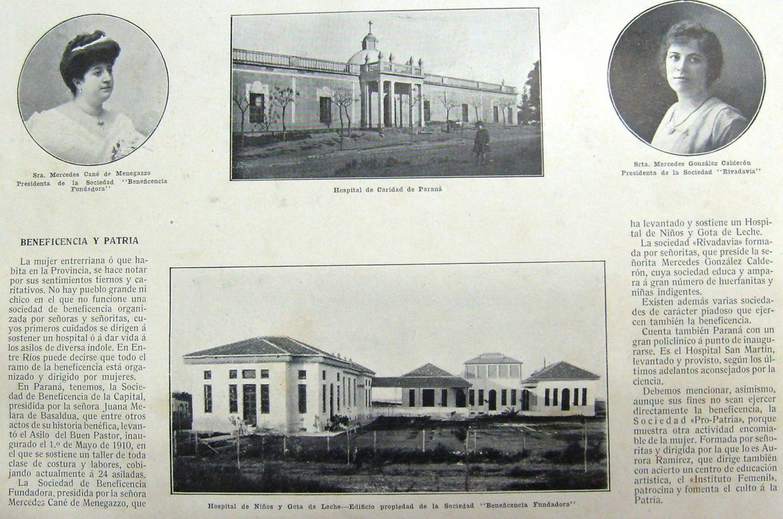 En junio de 1905 se suscitó una sensible divergencia entre las asociadas que dio origen a dos sociedades, una que continuó llamándose Sociedad de Beneficencia de Paraná y la otra Sociedad de Beneficencia Fundadora. En esta oportunidad se dejó sin efecto la mencionada ordenanza y en el trance de cumplir los fines de asistencia social que se habían propuesto la primera fundó el asilo Buen Pastor y la segunda el Hospital de Niños.