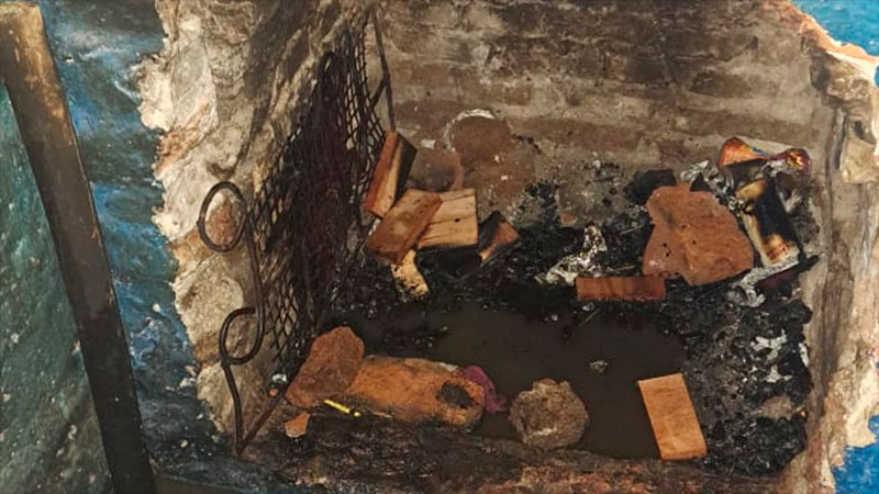 Una vez en el lugar, los agentes pudieron constatar que la vivienda se estaba incendiando parcialmente en su interior. Las llamas surgían del interior de la chimenea y emanaba un fuerte olor a combustible.