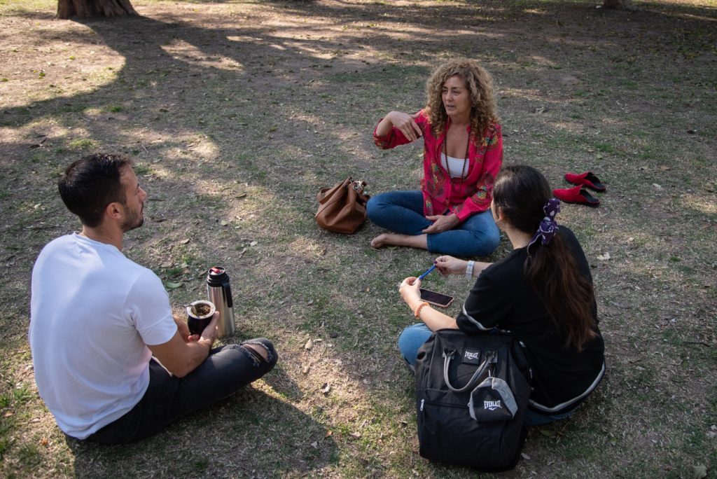 Su enfoque consiste en una mirada revolucionaria que alienta a comprender a los caballos como pares a los humanos y ya no desde un lugar de dominación. “Hemos hecho ejercicios en los que los participantes eligen caballos y llevan a estos a diferentes puntos que representan los ciclos de la vida. Los animales brindan información que se puede leer”, dijo Nicolás.