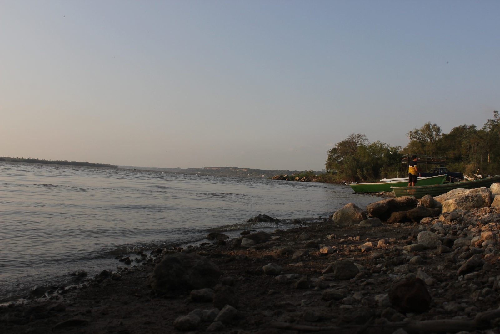 La sequía imperante, hay que decir, se siente durante el viaje cuando pasa raudo una camioneta y hay que apurarse a levantar las ventanillas o en las cuadrículas campestres que flotan sobre esas nubes de polvo. Son 10 kilómetros de polvareda y caminos de pronunciadas lomas hasta llegar a la orilla del Paraná, donde se concentra un puñado de casas, en general de fin de semana, que se recuestan sobre el río. Enseguida esos aires secos y polvorientos quedan entre paréntesis, una vez que el río asoma y luego queda tan en primer plano, con una vista privilegiada y única que se tiñe de anaranjado con cada atardecer.