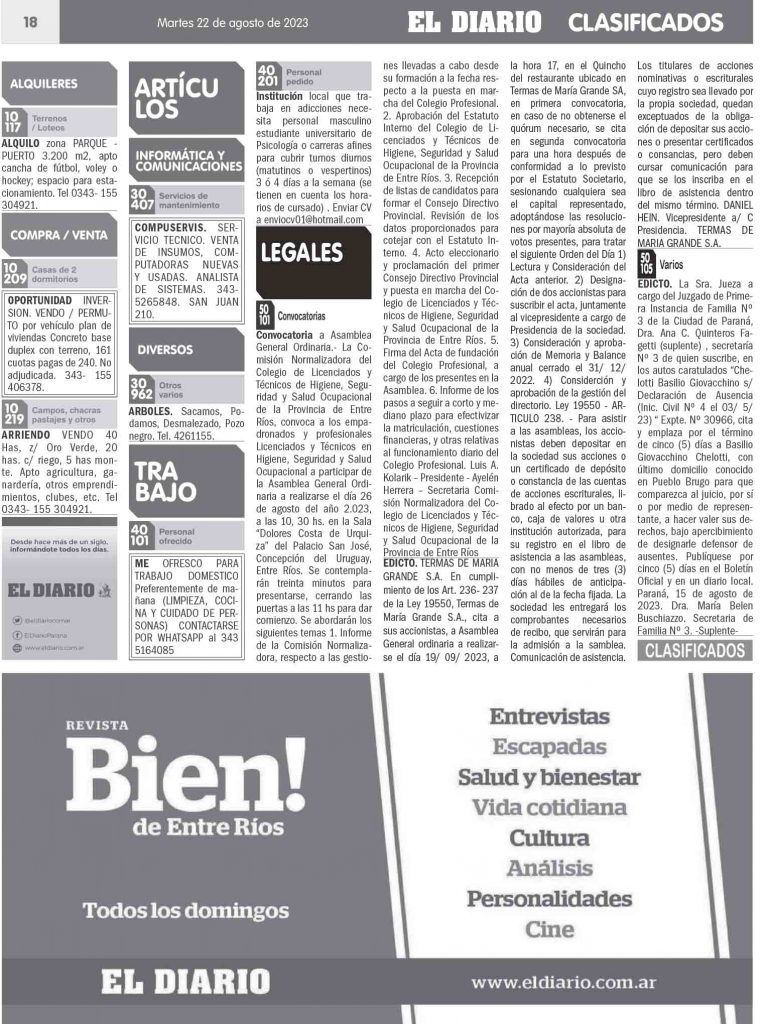 El Diario de Entre Ríos. Todos los derechos resevados. Prohibida su reproducción total o parcial.