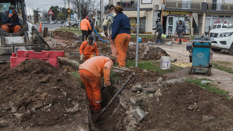 Las tareas se desarrolla en Zanni y Provincias Unidas, sector en el que días atrás se efectuó la unión de la nueva red distribuidora emplazada en el marco de la obra de ensanche y repavimentación de la avenida.