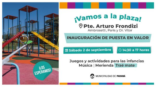Por Redacción30 agosto, 2023Será este sábado 2 de septiembre, de 14.30 a 17 hs. El espacio recreativo está ubicado en las calles París y Ambrosetti, de...
