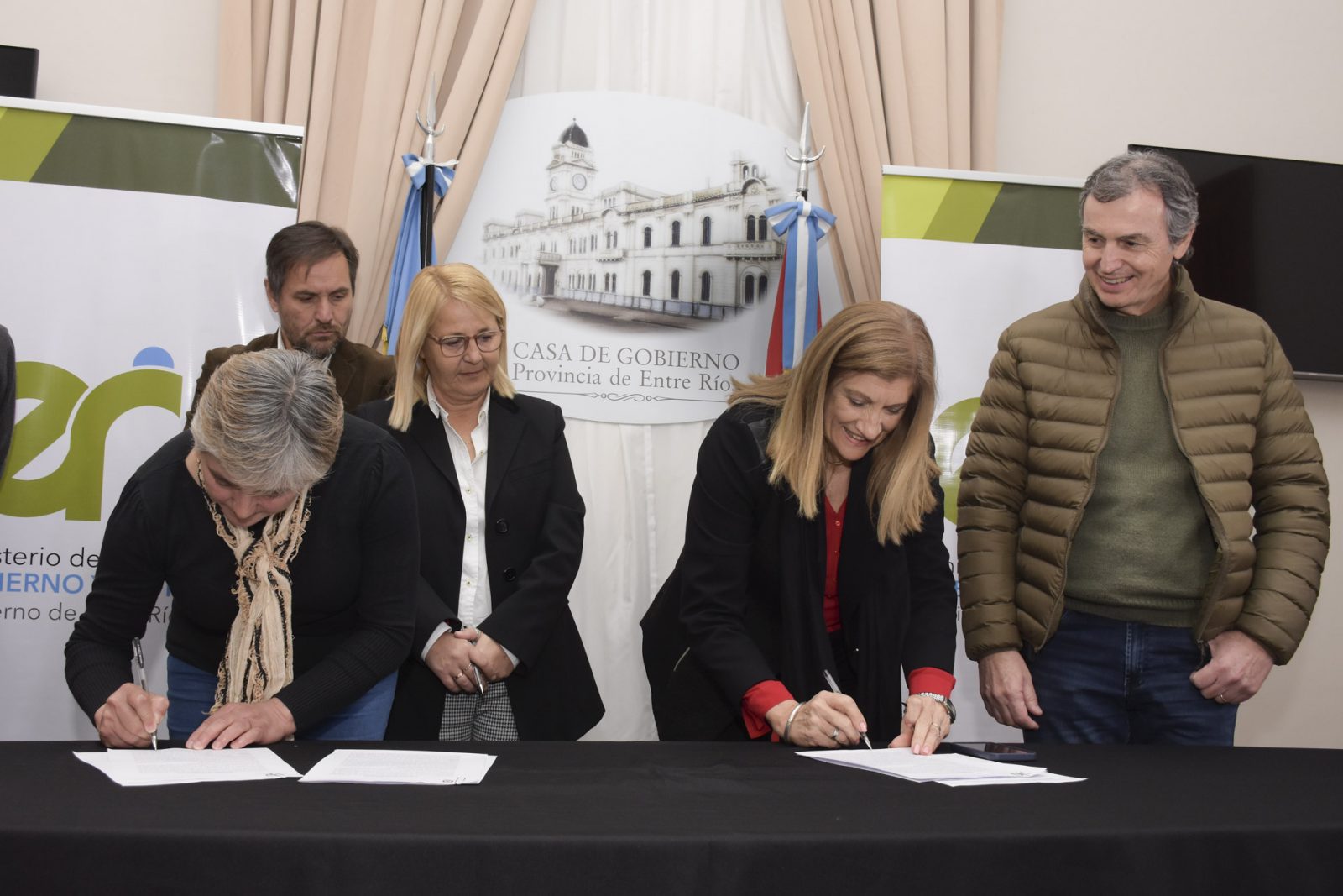 La ministra de Gobierno y Justicia, Rosario Romero, firmó convenios con siete comunas de los departamentos La Paz, Villaguay, Paraná, Diamante y Gualeguay que se suman a las ciudades con sistema de videovigilancia.
