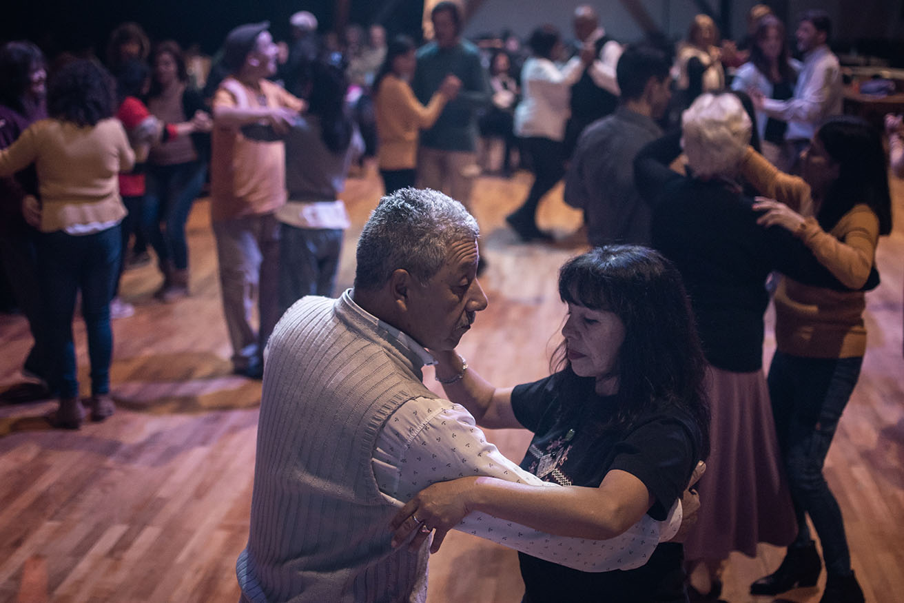 Mover el cuerpo en coordinación con la música mientras se dibuja la coreografía en el espacio. Transitar la sala enlazando el cuerpo con el de la pareja que acompaña mientras la melodía impulsa los pies, que se deslizan al compás del pulso marcado por el ritmo. Compartir un sentimiento por eso que está sonando mientras el encuentro se prolonga en el abrazo. Encontrarse en una peña para compartir el baile es una experiencia vital y reconfortante que conecta al ser humano con una dimensión social primordial.