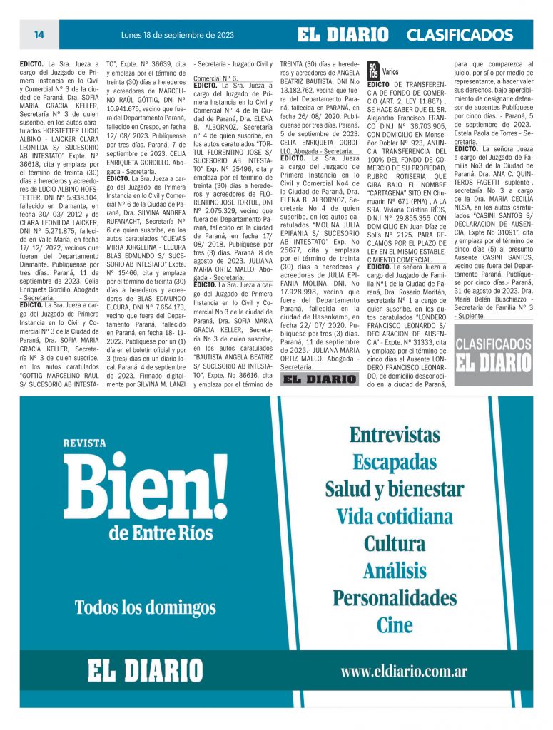 El Diario de Entre Ríos. Todos los derechos resevados. Prohibida su reproducción total o parcial.