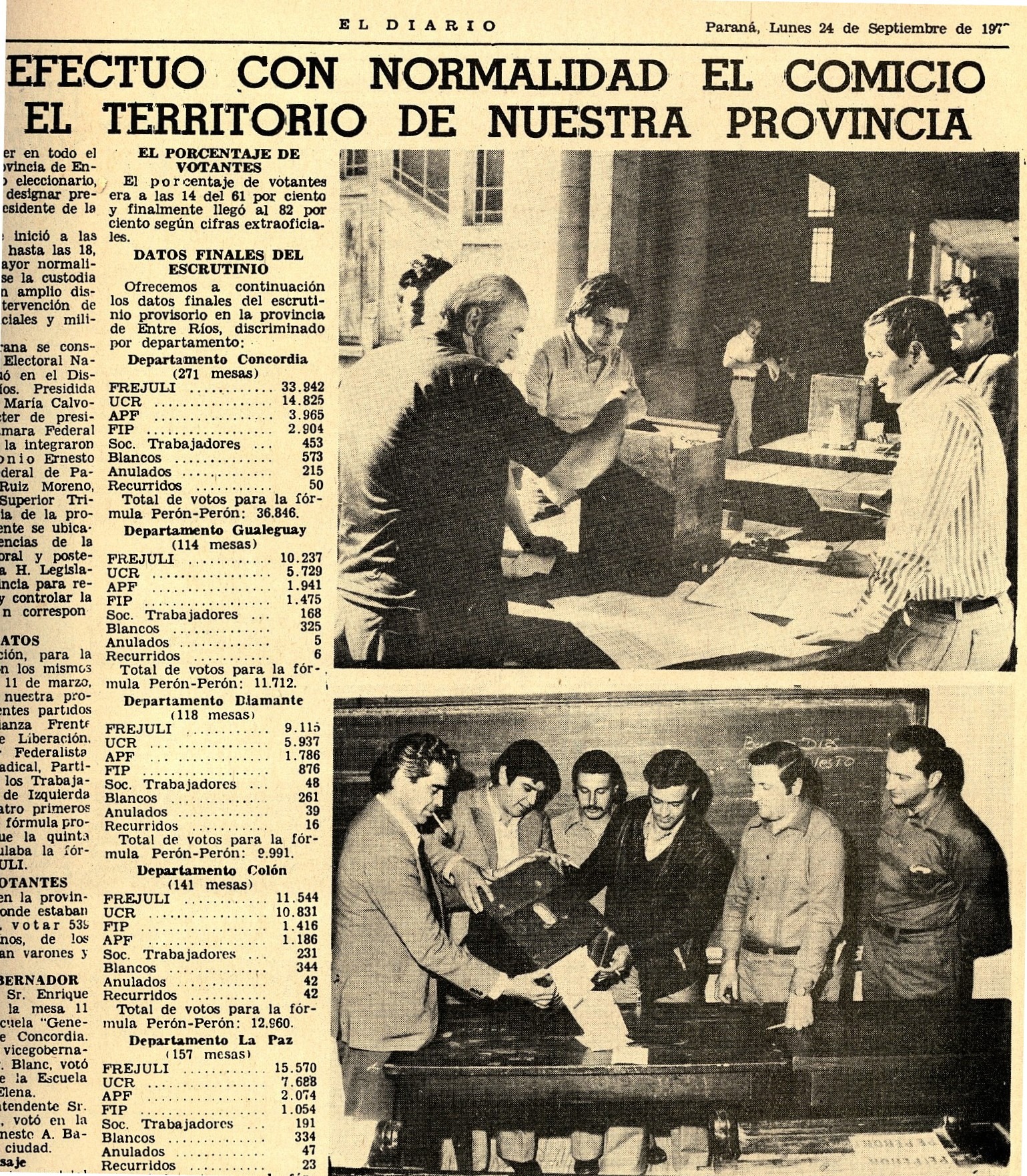 Las repercusiones en Entre Ríos de las elecciones de 1973, publicadas por El Diario de Paraná.