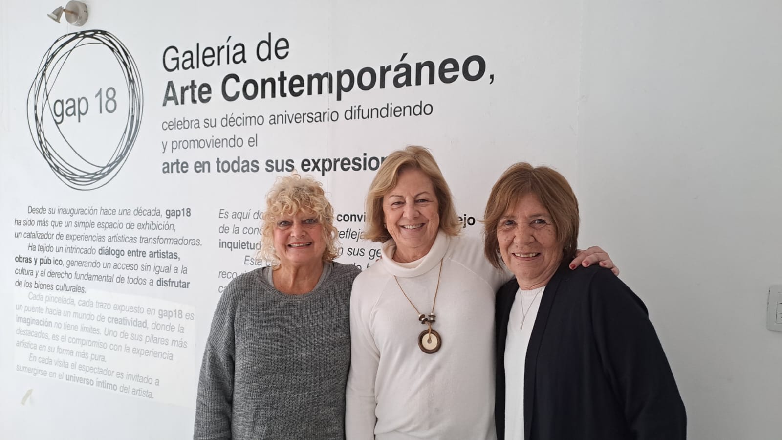A diez años de ese momento fundacional, el proyecto continúa en pie -lo cual no es poco- y con sus objetivos plenamente vigente. Actualmente la propuesta sigue adelante con un grupo de siete mujeres ligadas vitalmente al arte y sus expresiones visuales, que han coincidido en objetivos a nivel personal y a la vez en un proyecto común que las vincula en gestionar GAP 18. Se trata de Cristina Trápaga, Noemí Balbi y la propia Miriam Tello