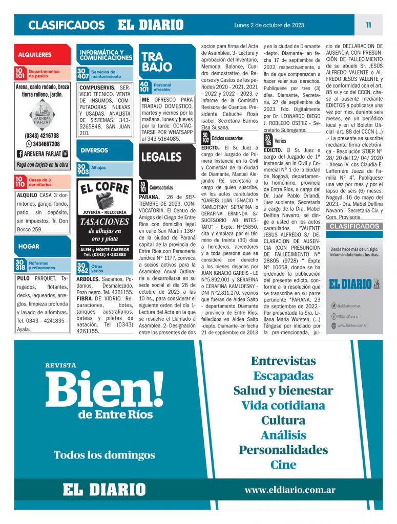 Clasificados 02.10.23