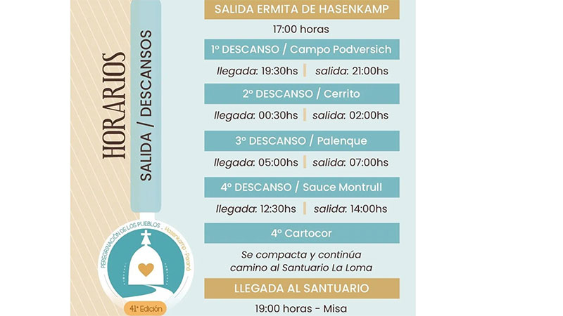 “La peregrinación saldrá el viernes desde la ermita de Hasenkamp para llegar el sábado alrededor de las 17 a Paraná y culminar a las 19 con la celebración de la eucaristía en el Santuario La Loma”, indicó el sacerdote.