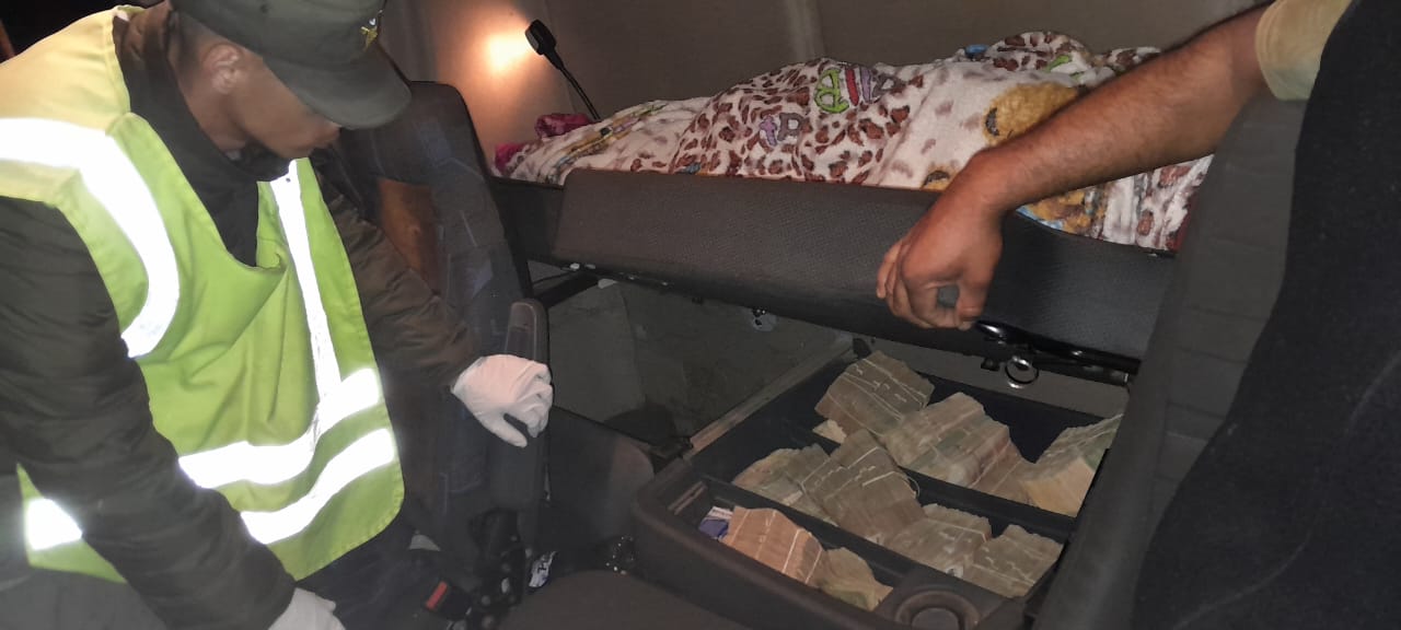 Al registrar la cabina del vehículo, los gendarmes hallaron, debajo de un asiento, ubicado en la parte posterior del conductor, 13.297.500 pesos argentinos, sin la documentación que avale su tenencia y transporte.