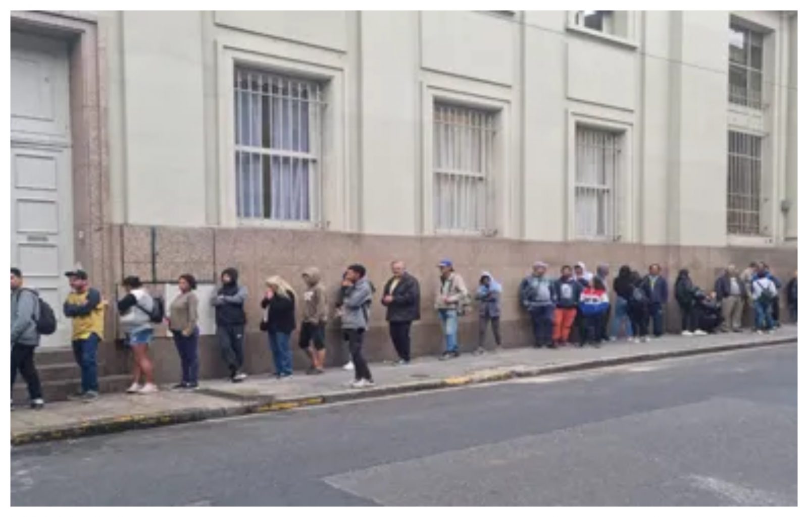 Una extensa fila de trabajadores informales aguardan su turno para cobrar el beneficio económico en la capital entrerriana.