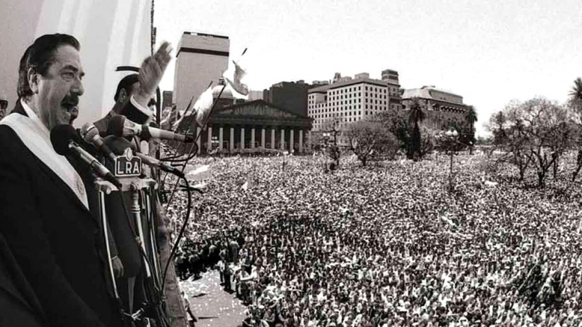 Raúl Alfonsín, con la Plaza vivándolo. Se viene la décima elección desde 1983