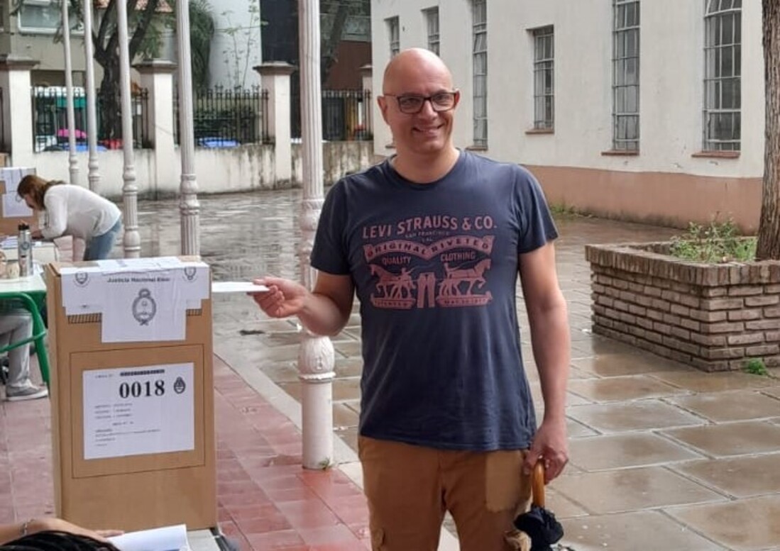 Dante Klocker, el candidato a intendente del FIT-U, votó en la Escuela Moreno de Paraná.