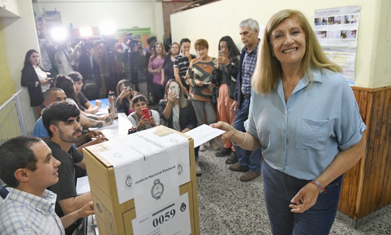 La candidata a intendenta de Paraná, Rosario Romero, emitió su voto en la Escuela Provincial 161, República de Entre Ríos, mesa 59. Luego de depositar el sobre en la urna, valoró el proceso democrático y la ciudadana, pese a las condiciones climáticas.