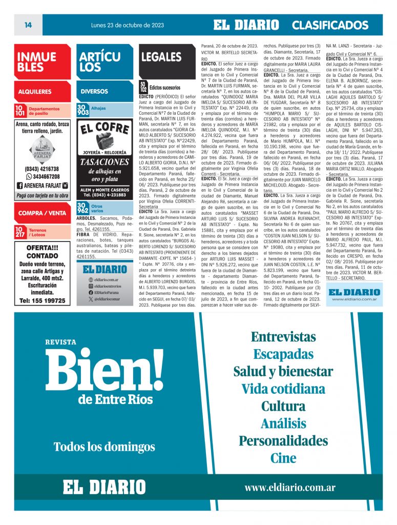 Clasificados 23.10.23