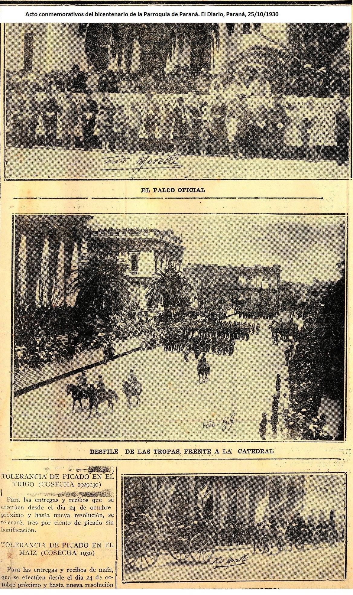 Los actos conmemorativos del bicentenario de la Parroquia de Paraná reflejados por El Diario de Paraná