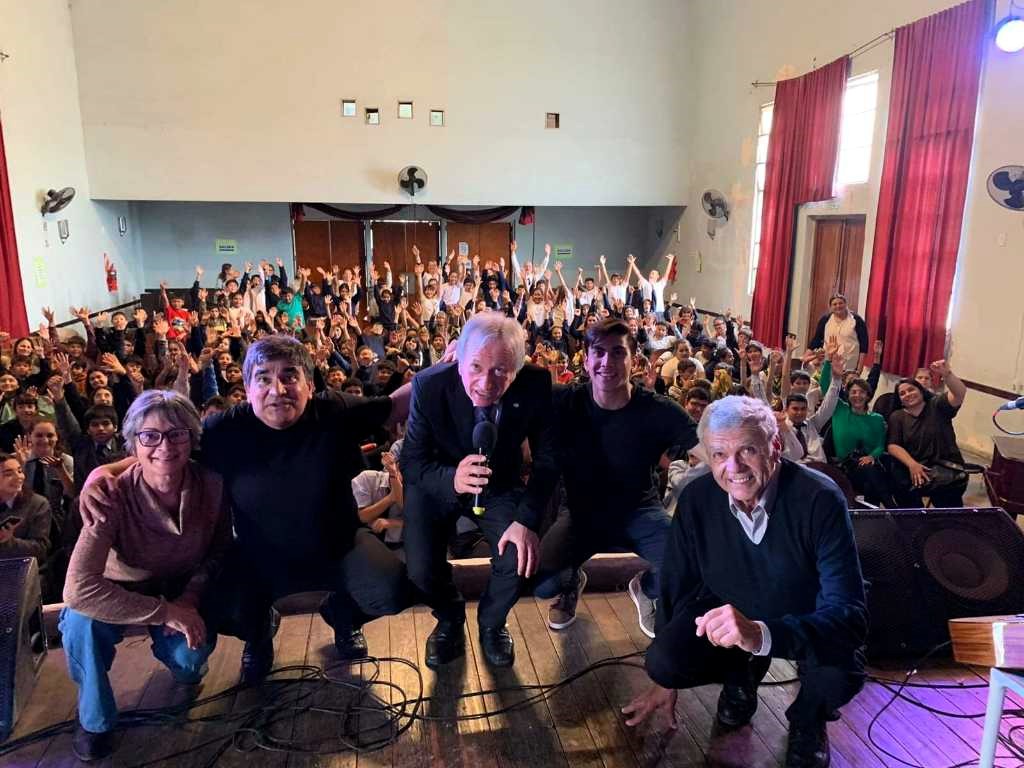El viernes la presentación de la charla espectáculo De la raíz al vuelo, producido por Roberto Romani, Vicente Cúneo, y Hugo y Celestino Mena reunió a centenares de escolares en la Biblioteca Popular de la ciudad.